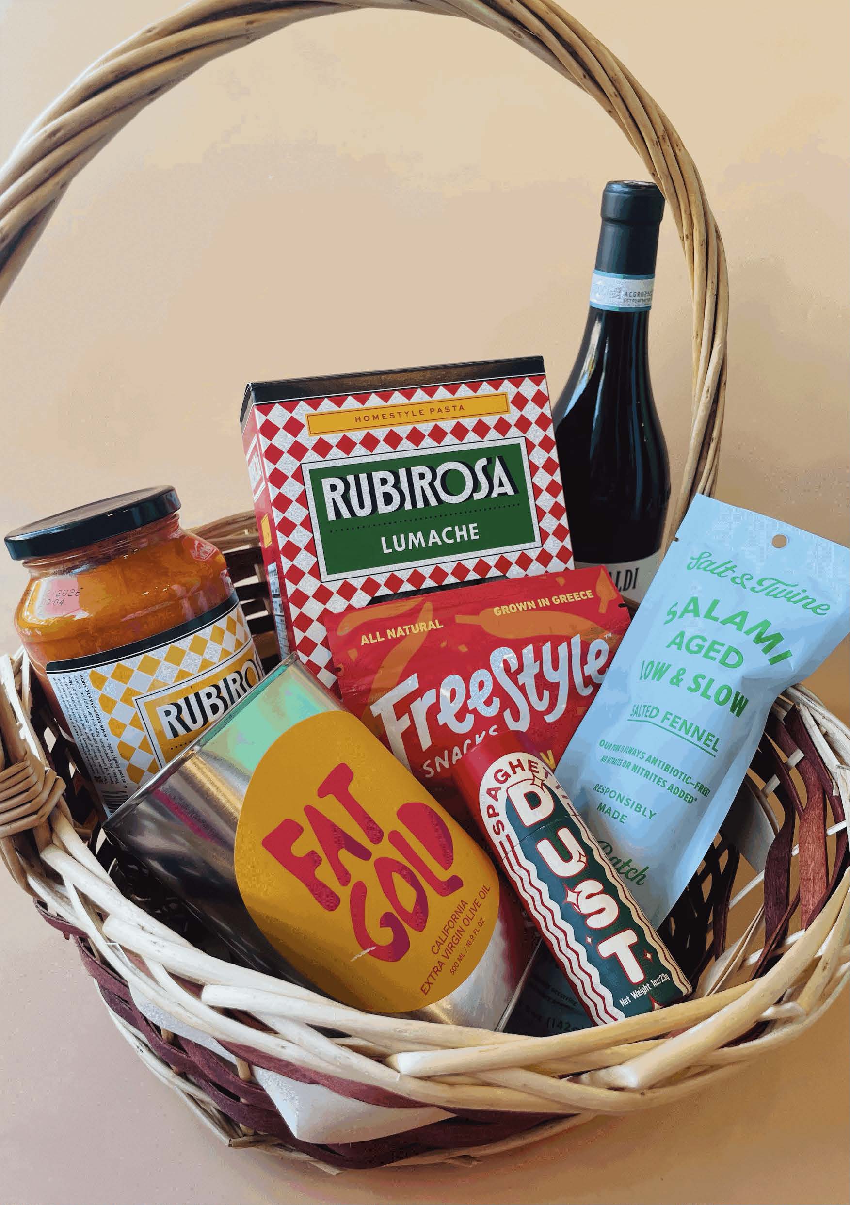 A taste of Italy in every bite. This basket features premium Italian-inspired flavors, cured meats, delicious pasta and sauce, all paired beautifully with your choice of red, white, or sparkling wine. A perfect gift for the gourmand or traveler at heart.